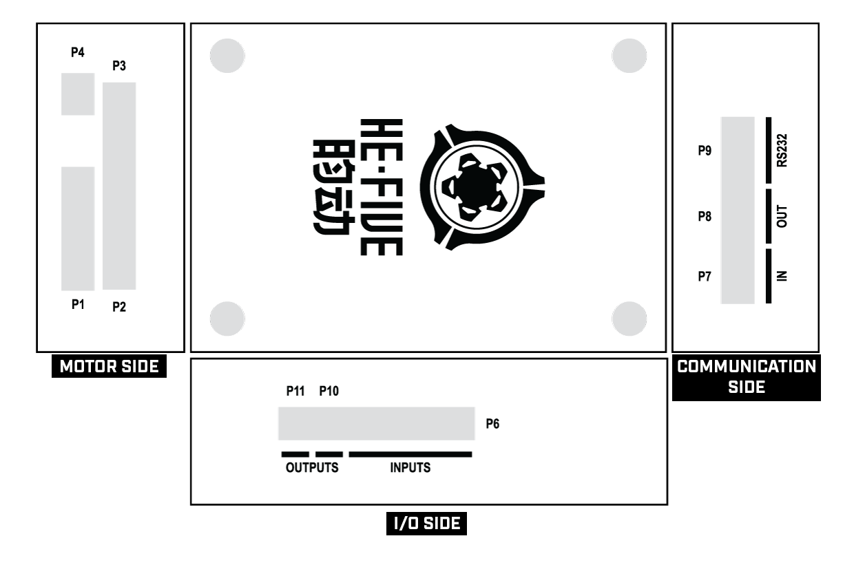 | 4 | Mot0 V | Motor #1 Phase V output of drive (use for DC motor connection) |